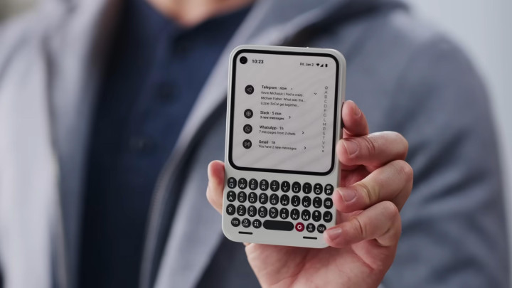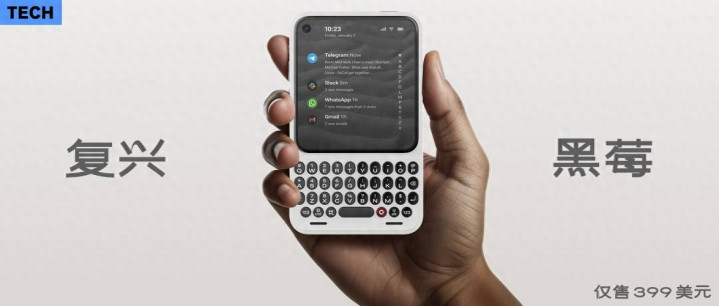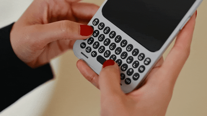 讲完了键盘 + 背夹电池,接下来才是真正的重头戏,一个在今天的手机市场上既前卫又复古的新产品:Clicks Communicator。