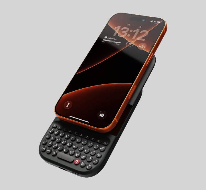 他们的主要成果,就是这个让黑莓老粉落泪的产品:Clicks Keyboard 键盘手机壳。